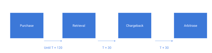- Tahap Chargeback: H+30 dari acquiring bank menerima respon tahap retrieval, memberitahu Xendit, sampai mengirimkan bukti untuk melawan chargeback ke issuing bank.