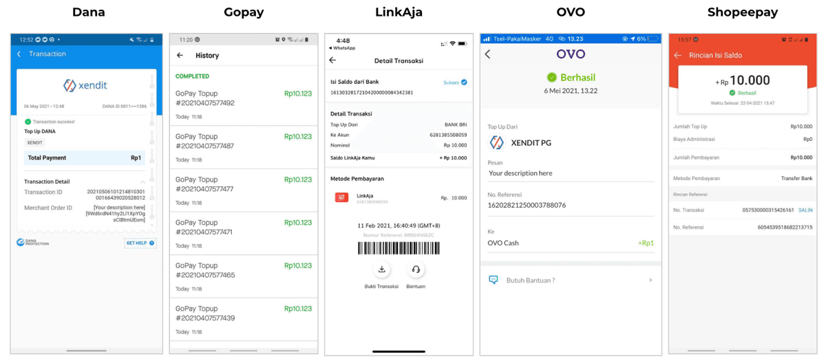 See below for examples of what shows up on your recipient's e-wallet apps. If supported, the app will display Xendit as the sender and the description you input.
